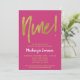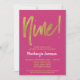 An elegant, simple but striking hot pink and gold 9th birthday party invitation. Glam script text at the top and gold text below with the name in stand-out white
