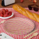 Custom paper plates for any occasion featuring double pink and gold stripes.