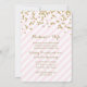 Elegant wedding vow renewal invitations in light pastel blush pink and white stripes pattern with gold colour confetti and handwritten style lettering. Fully customisable text to include your vow renewal ceremony details.