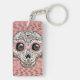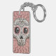 Pink & Gold Sugar Skull & Cute Whimsical Hearts Key Ring