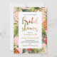 This unique tropical bridal shower invitation features a beautiful tropical floral pattern with a stylish typography.