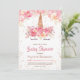 Unicorn Baby Shower Invitation, pink flowers, gold glitter.