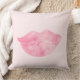 Pink lips on one side of pillow and gold lips on other side with a blush pink background