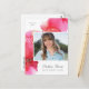 This pretty watercolor graduation announcement features a large photo framed by pink and gold watercolors against a white background. Below the photo, the graduate's name is written in modern calligraphy script. On the back, you can add grad party details and a custom message to recipients.