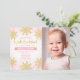 A modern and whimsical winter onederland first birthday photo invitation. This cute design features gold glitter snowflakes and light pink. NOT ACTUAL GLITTER