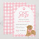 Planning a girl’s golden retriever first birthday? This editable pink gingham invite showcases a hand-drawn golden retriever doggy, sweet paw prints, and the phrase “One Golden Year.” Personalise the words and font right in your browser—no software to download. Then, download for instant DIY printing or let Zazzle handle the pro prints delivered to your door. Set the perfect tone for a tail-wagging celebration they’ll never forget.
