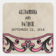 Elegant and chic Gothic Swirls Wedding Stickers featuring a vintage faux textured beige background and swirl flourish borders in magenta. This antique looking design is perfect for a gothic or vintage wedding. Easy to customise, simply add your wedding details in the text fields provided. Click "Customise It" to find more personalisation options.