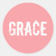 Pink classic round sticker with white Grace text for beautiful letters and uplifting, sweet gifts.