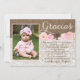 Pink Gracias Bautizo Baptism thank you Girl Card