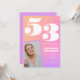 Pink 53rd birthday invitations for her Retro Photo gradient