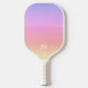 This pink and orange pastel pickleball paddle has a gradient ombre design with white trim. The colours evoke a soft sunset. The monogram initials are in white also and you can personalise the paddle by changing them.