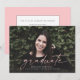 This full bleed photo graduation announcement features the word "graduate" written in pink script across the front. It has space for the graduate's name, class year, and school. The back of the card can be used for a personal message or graduation party invitation details.