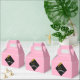 Graduation party favours featuring black graduation cap with gold tassel on pink background.