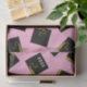 Creative graduation gift tissue and grad party decoration featuring classic black and gold graduation caps on pink background. Edit text to customise.
