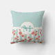 Pink Grapefruit Pattern on Green Stripes Monogram Cushion