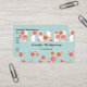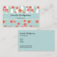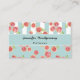 Business cards featuring a digital image with a repeating pattern of pink grapefruits created with watercolors, set on a pastel green and white striped pattern.  A green