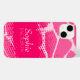 Bright animal patterned iPhone case in bold hot pink hues. Personalise this item with your full name. This example currently reads: Sophie Jackson. This original pattern by Sarah Trett, is based on the patterning found on a giraffe with a halftone moiré dot gain pattern overlay.