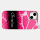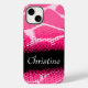Bright bold animal patterned case in black and pink hues. Personalise this item with your first name. This example currently reads: Christine. This original pattern by Sarah Trett, is based on the patterning found on a giraffe with a halftone moiré dot gain pattern overlay.