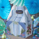 Pink Graphic Flowers on Blue-wood-fabric Texture Favour Box