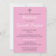 Celebrate your child’s special day with this simple watercolor baptism invitation, featuring a gray cross and pink background for a feminine and graceful design with a repeating gray cross pattern on the back.