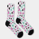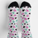These cute socks have a pattern of modern heart images in tones of pink, mint green, and black. The pattern is printed on a white background. Perfect for Valentine's Day or an anniversary gift, but bright and colorful for all year long. Spread the love!