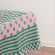 Pink Green Boho Check Floral Stripes Pattern Tablecloth