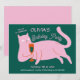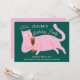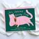 Pink green cat funny birthday invitation