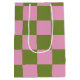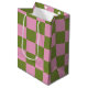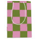 Pink Green Chequered Gingham Pattern Medium Gift Bag