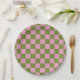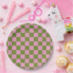 Pink Green Chequered Gingham Pattern Paper Plate