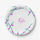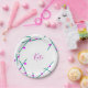 Pink green cherry tree name boho retro rustic bold paper plate
