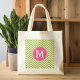 Pink & Green Chevron Pattern with Monogram Tote Bag