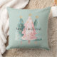 Pink Green Christmas Trees Gold Stars Cushion