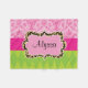 Show off your style in a fun way with this pink and green damask and diamond shape with leopard outline personalised throw blanket.