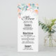 Event menu with an elegant floral border. Flowers and leaves in pink and green.