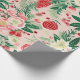 Pink fanciful florals decorate this cute Christmas pattern in a retro design like those popular in the past midcentury. Mixed in with the somewhat whimsical flower elements are fun matching and contrasting baubles and ornaments. All these amid green leaves and other foliage. And on a blush pink background. Very classy and lovely for your holiday gift wrapping.