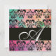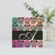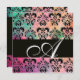 PINK GREEN FUCHSIA BLACK DAMASK MONOGRAM , white Invitation