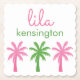 Pink & Green Palm Trees Personalised Coasters
