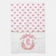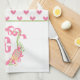 Pink & Green Pickleball Paddle Monogram Crest Tea Towel