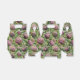 This is a colourful watercolor pattern of exotic pink protea flowers with green stems and leaves on a light beige background.