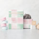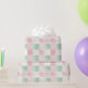 This pink and light green watercolor pattern originated back in the '50s. It is a light and airy pastel gingham style retro piece with white squares too. It is a nice choice of a roll for your Christmas gift packaging wrapping paper. Especially if you like subtle designs or enjoy it as a background for bright, festive bows or ornaments.