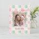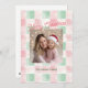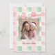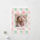 A lovely pink and light green gingham or checked border makes this retro watercolor Christmas card special. With delicate colouring for the special winter season, It makes a lovely pastel frame around your own photo for this cute holiday card. On the back of this flat card is an example greeting, but you can change all the text. Be sure to edit the family and personal names that are on the front and back of the card, and also the date.