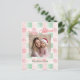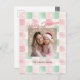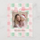 A lovely pink and light green gingham or checked border makes this retro watercolor Christmas card truly special. With delicate colouring of the special winter season, It makes a lovely pastel frame for your own photo on this cute holiday postcard. On the back of this postcard is an example greeting, but you can change all the text or delete it. Be sure to edit the family and personal names that are on the front and back of the card, and also the date.