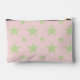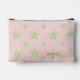 A pretty and feminine pink and green stars pouch. This modern, elegant cosmetic bag doubles as a pastel pencil case, perfect as a cute toiletry or back-to-school makeup bag for her, girls, or a constellation-themed accessory.