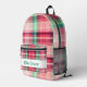 This pink tartan pattern is a gorgeous backpack design. Modern minimalist pink and green plaid pattern. A modern and striking pattern made of stripes - with a custom name.