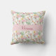Pink Green Watercolor Wildflower Monogram Name Cushion