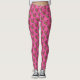 Leggings feature an original marker illustration of a row of slices of juicy pink watermelon with green rinds, printed on a bright pink background.