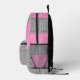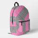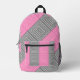 Go back to school in style with this pink and grey abstract print backpack. Awesome book bag features features an abstract pattern of striped squares in shades of pink and grey. , with black details. Original digital artwork by Buttercup's Clothing and Collectables.