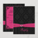 This black and charcoal grey damask RSVP card has a hot pink PRINTED ribbon and PRINTED diamond jewels buckle on it that matches the wedding invitation shown below. If you require any other matching items, or would like it in another colour combination, please email niteowlstudio@gmail.com with your request.
