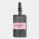 Pink Grey Brushed Metal Script Monogram Luggage Tag