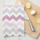 Modern and elegant dusty rose pink, grey and white retro chevron zigzags stripes vintage pattern kitchen towel, customisable with your own text or photo, a unique and elegant addition to your kitchen decor.